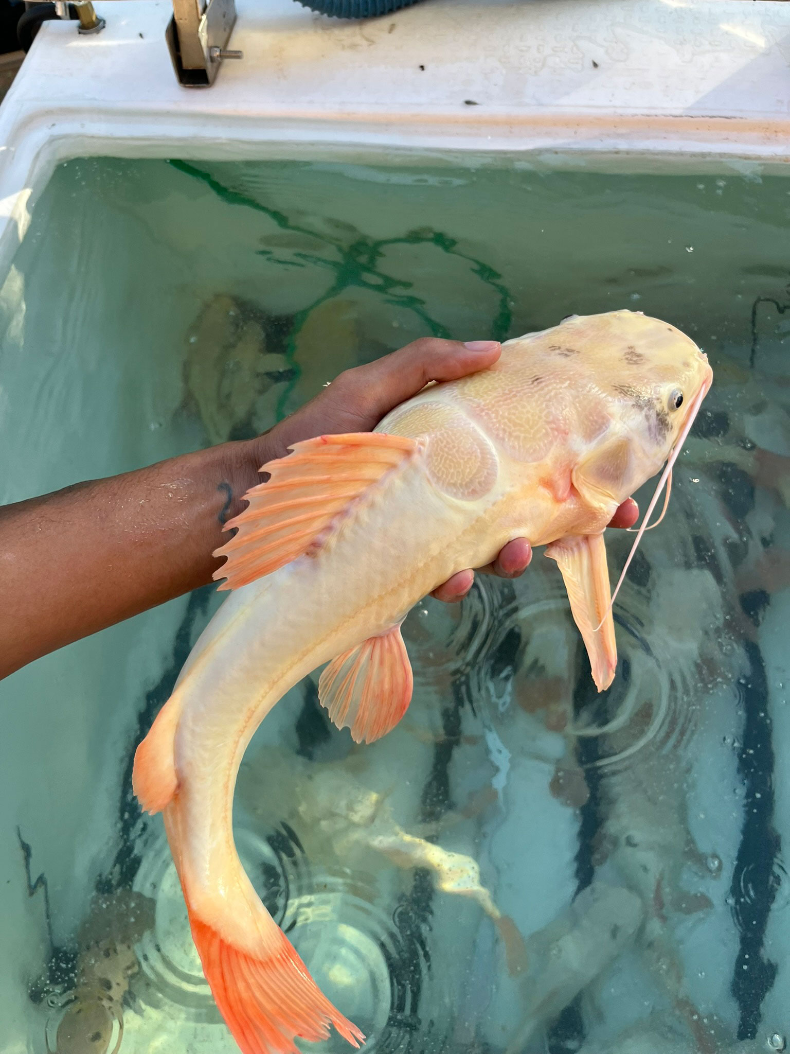 Nome científico: Phractocephalus hemioliopterus (variação leucística)